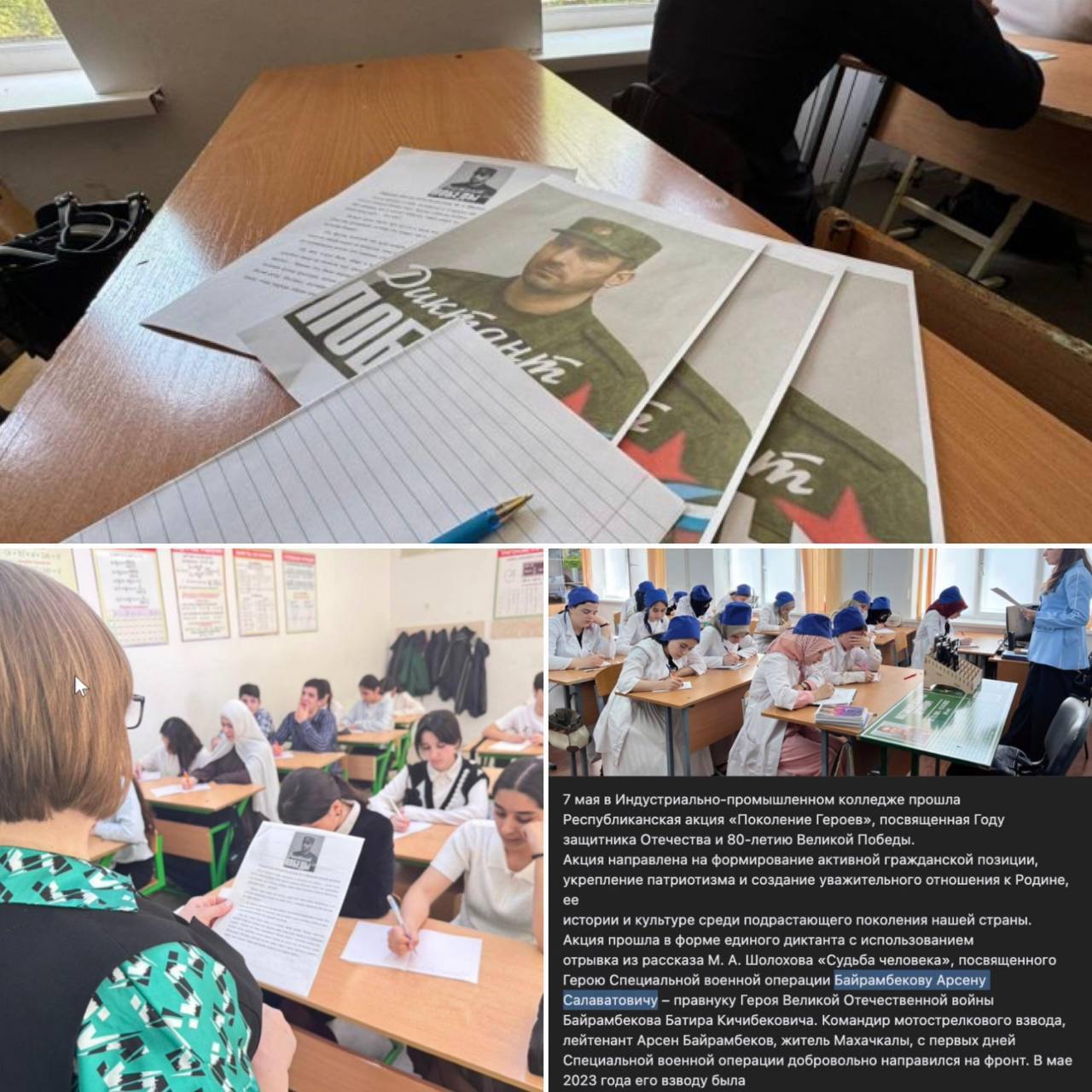 У Дагестані в межах акції «Покоління Героїв», присвяченої 80-річчю перемоги влаштували захід, спрямований на «виховання патріотизму» молоді, використавши для диктанту уривки з оповідання Шолохова «Доля людини». Його присвятили такому собі Арсену Байрамбекову, якого пропаганда називає «героєм СВО».