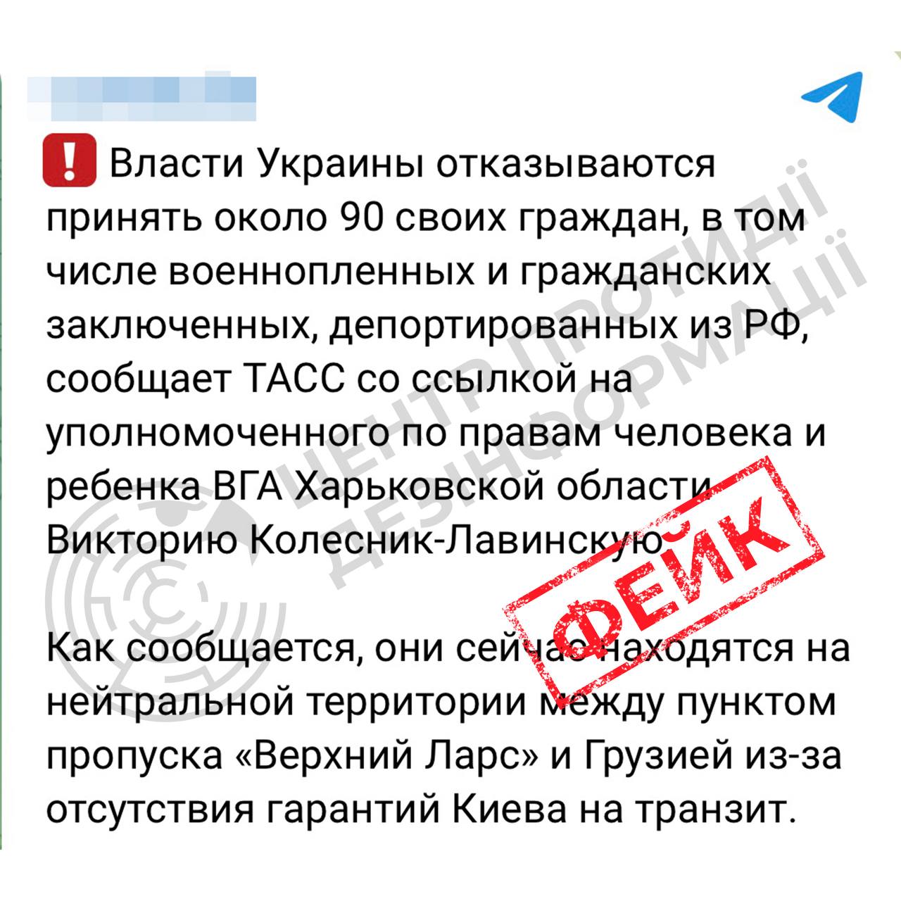 ‼️Раніше Центр спростовував фейк, що Україна нібито відмовляється забирати своїх громадян з пункту пропуску «Верхній Ларс».